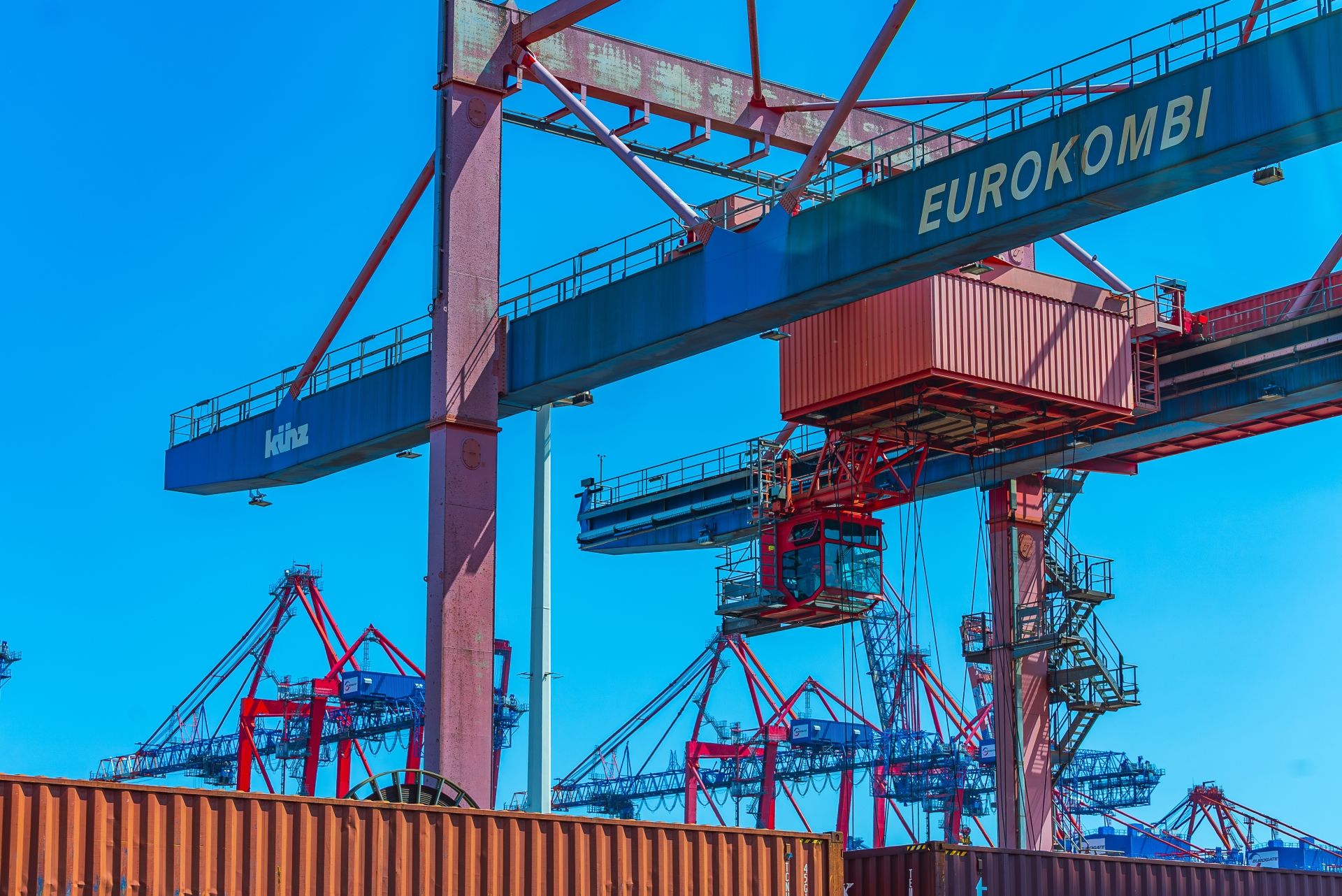 EUROKOMBI ist eine moderne Umschlaganlage für den kombinierten Verkehr im Zentrum des größten europäischen Eisenbahnhafens. Am Köhlfleetdamm gelegen und direkt mit dem EUROGATE-Seeterminal verbunden, bietet das Terminal optimale Bedingungen für den schnellen und zuverlässigen Containerumschlag zwischen Schiene, Straße und Seeweg.